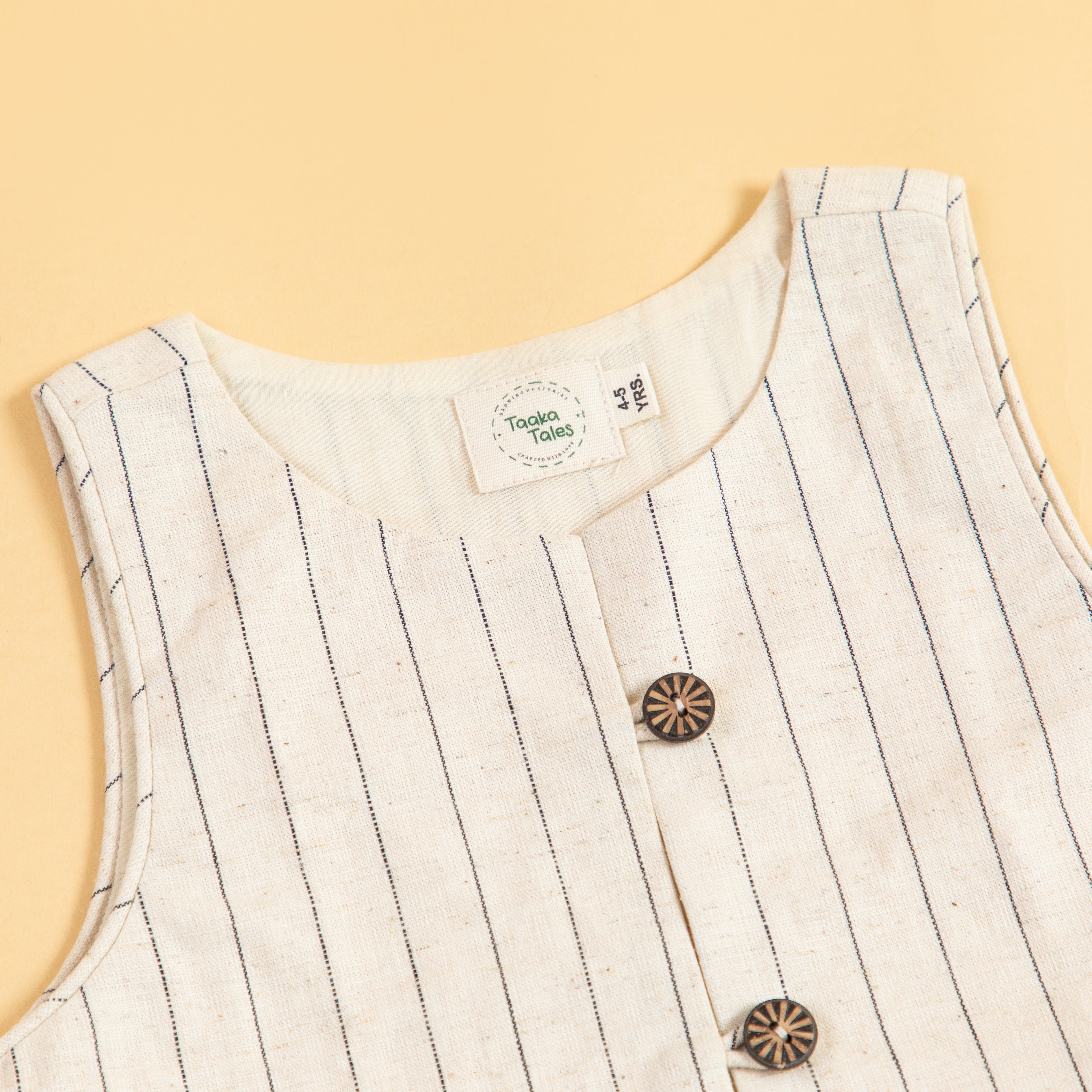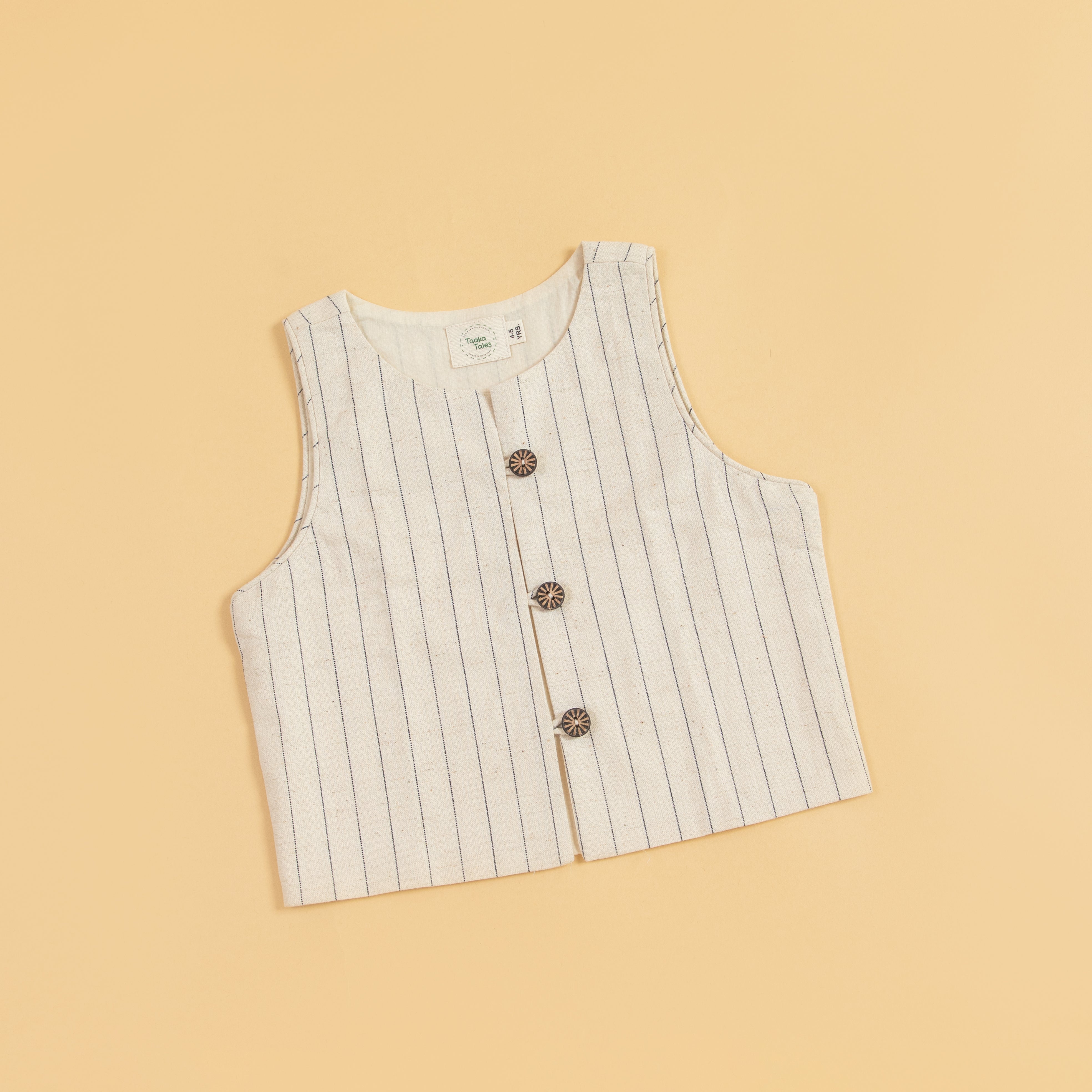 This elegant waistcoat for girls is designed to add a refined touch to any outfit. Crafted from soft, high-quality fabric, it features a tailored fit with delicate button details for a timeless look. Perfect for layering over dresses or pairing with co-ord sets, this versatile piece blends sophistication with playful charm.