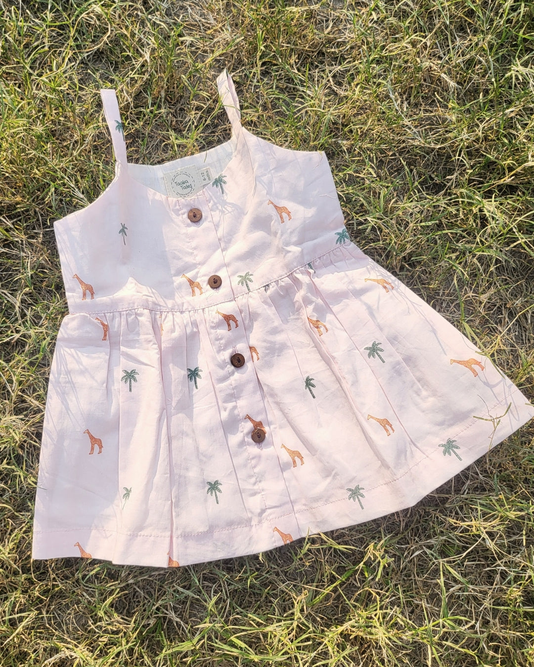 This adorable sleeveless dress is crafted in soft, breathable cotton-linen, making it perfect for warm, sunny days.The scalloped lace trims around the neckline and armholes add a sweet, vintage charm. Finished with a gathered hem for a breezy silhouette, this dress blends comfort and style effortlessly